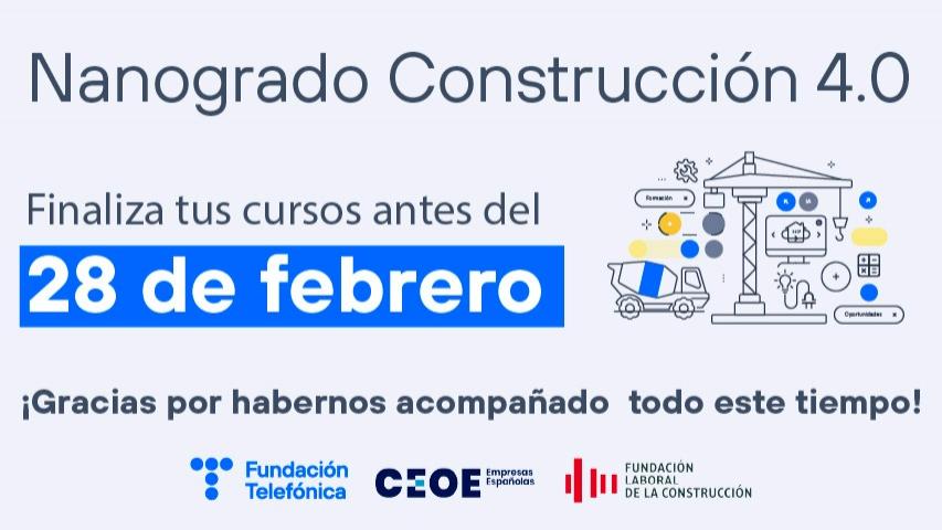 Noticia Fundación 18/02/2026 Concluye tras 15 ediciones el Nanogrado Construcción 4.0 sobre digitalización con más de 76.000 profesionales del sector inscritos