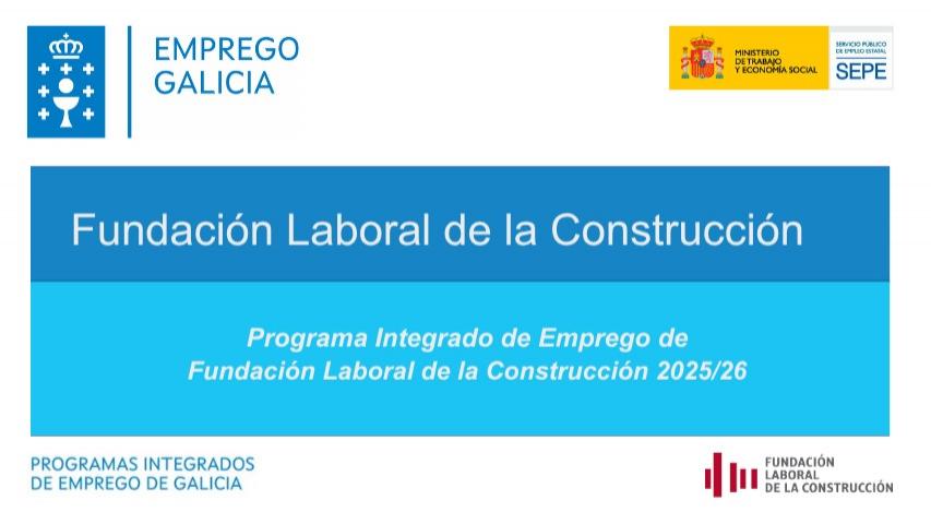 La Consellería de Emprego, Comercio e Emigración acaba de conceder a la Fundación Laboral de la Construcción la puesta en marcha de un Programa Integrado de Emprego de Galicia, que cuenta con la financiación de la Xunta de Galicia y del Servicio Público de Empleo Estatal (SEPE).