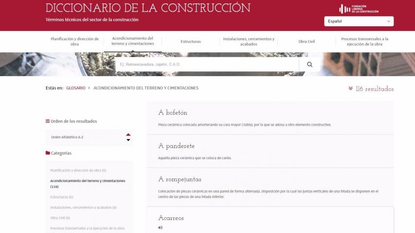 El Diccionario on line de la Construcción, creado por la Fundación Laboral de la Construcción, incorpora nuevos términos y ya cuenta con 2.400 palabras específicas de construcción y arquitectura.