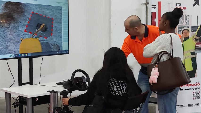 Los visitantes también han podido probar el simulador de retroexcavadora para el manejo de maquinaria de movimiento de tierras. Estos recursos, a disposición de los visitantes, son utilizados por la Fundación para la formación de profesionales del sector y se complementan con las clases prácticas realizadas con maquinaria real.