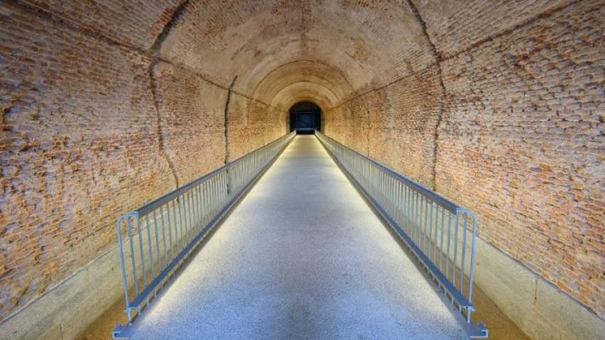 Esta semana, Patrimonio Nacional ha reabierto al público, tras su rehabilitación, el primer tramo del histórico Túnel de Villanueva -una gran bóveda de medio punto construida en ladrillo sobre sillería de granito-, en los jardines del Campo del Moro. Con un presupuesto de más de 400.000 euros, la actuación ha durado un año y se enmarca en el Plan de Recuperación, Transformación y Resiliencia, financiado con los fondos europeos Next Generation EU. El público podrá disfrutar, en el mismo horario de apertura que tienen los jardines (todos los días de 10:00 a 18:00 de octubre a marzo, y de 10:00 a 20:00 de abril a septiembre), de la visita a la singular construcción abovedada en óptimas condiciones de accesibilidad y seguridad.