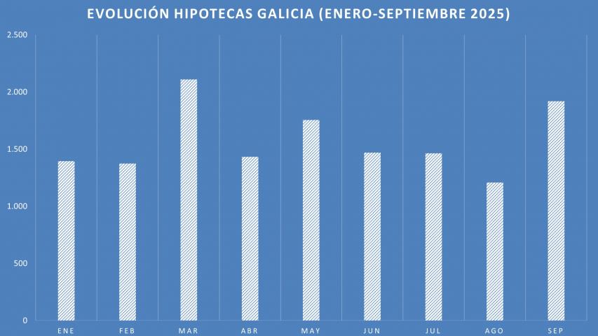 El número de hipotecas constituidas sobre viviendas en septiembre de 2025 en Galicia fue de 1.920, un 18,5% más que ese mismo mes del año anterior y un 59% más que en agosto, según publicó el Observatorio Industrial de la Construcción con datos del Instituto Nacional de Estadística (INE).