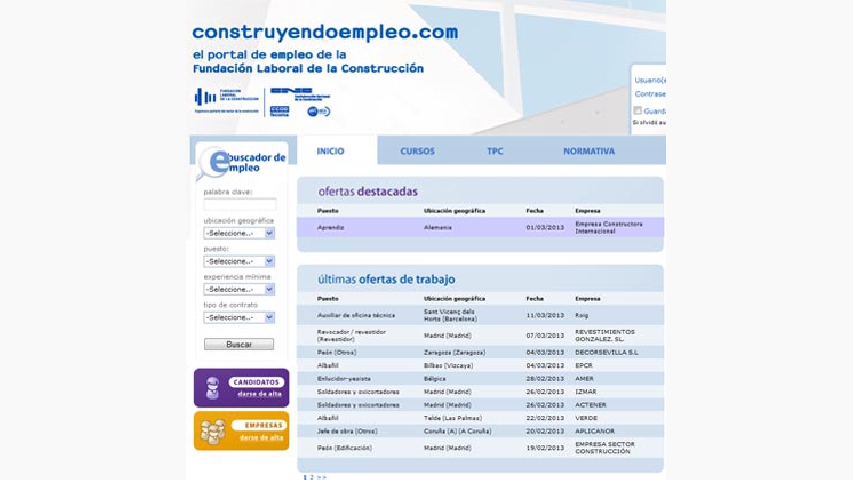 Ya son más de 33.000 usuarios y 450 empresas registradas en el portal de empleo de referencia en el sector de la construcción, www.construyendoempleo.com. La Fundación Laboral de la Construcción puso enmarcha esta página web hace dos años con el objetivo de fomentar la empleablidad del sector.