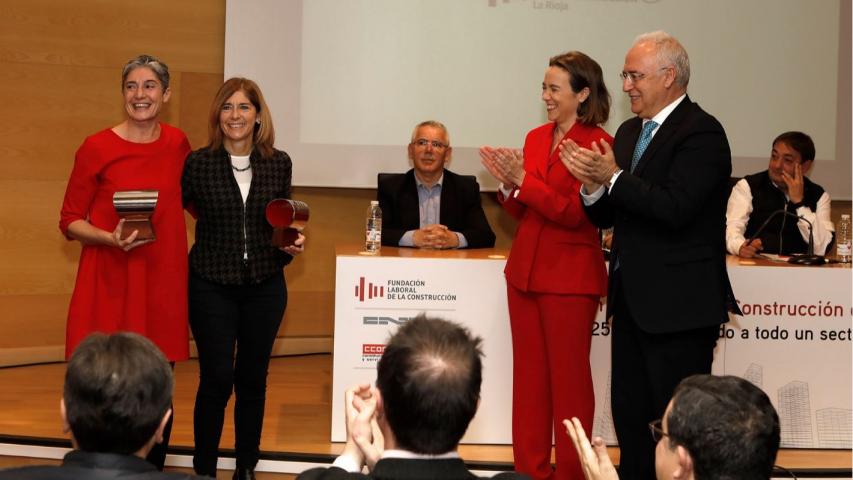 Por su parte, la alcaldesa de Logroño recibió un reconocimiento en agradecimiento a la cesión de terrenos que el Ayuntamiento realizó hace 15 años, parcela municipal donde se construyó el Centro de Formación y sede de la actual Fundación Laboral de La Rioja.